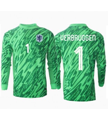 Nederländerna Bart Verbruggen #1 Målvakt Hemmatröja EM 2024 Långärmad